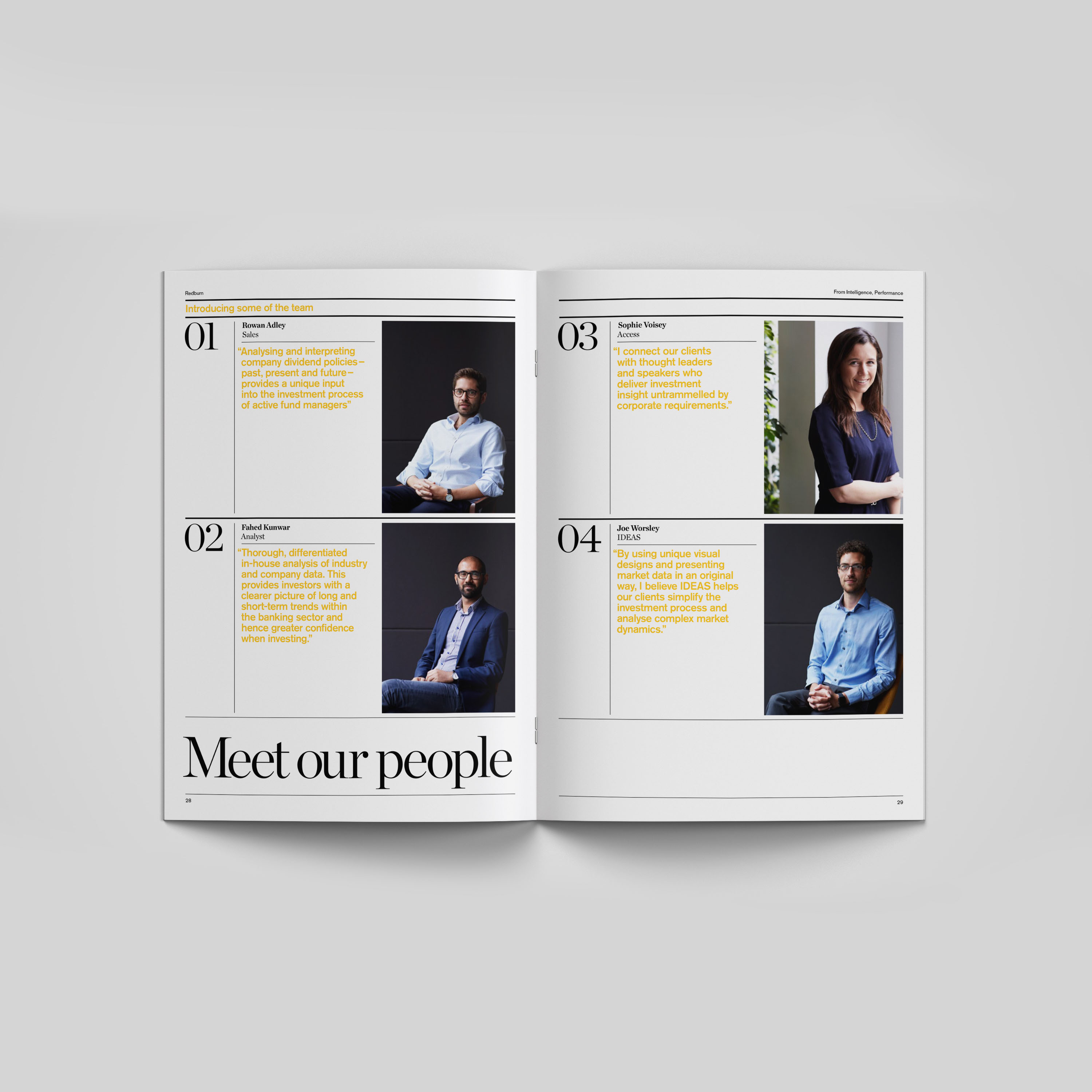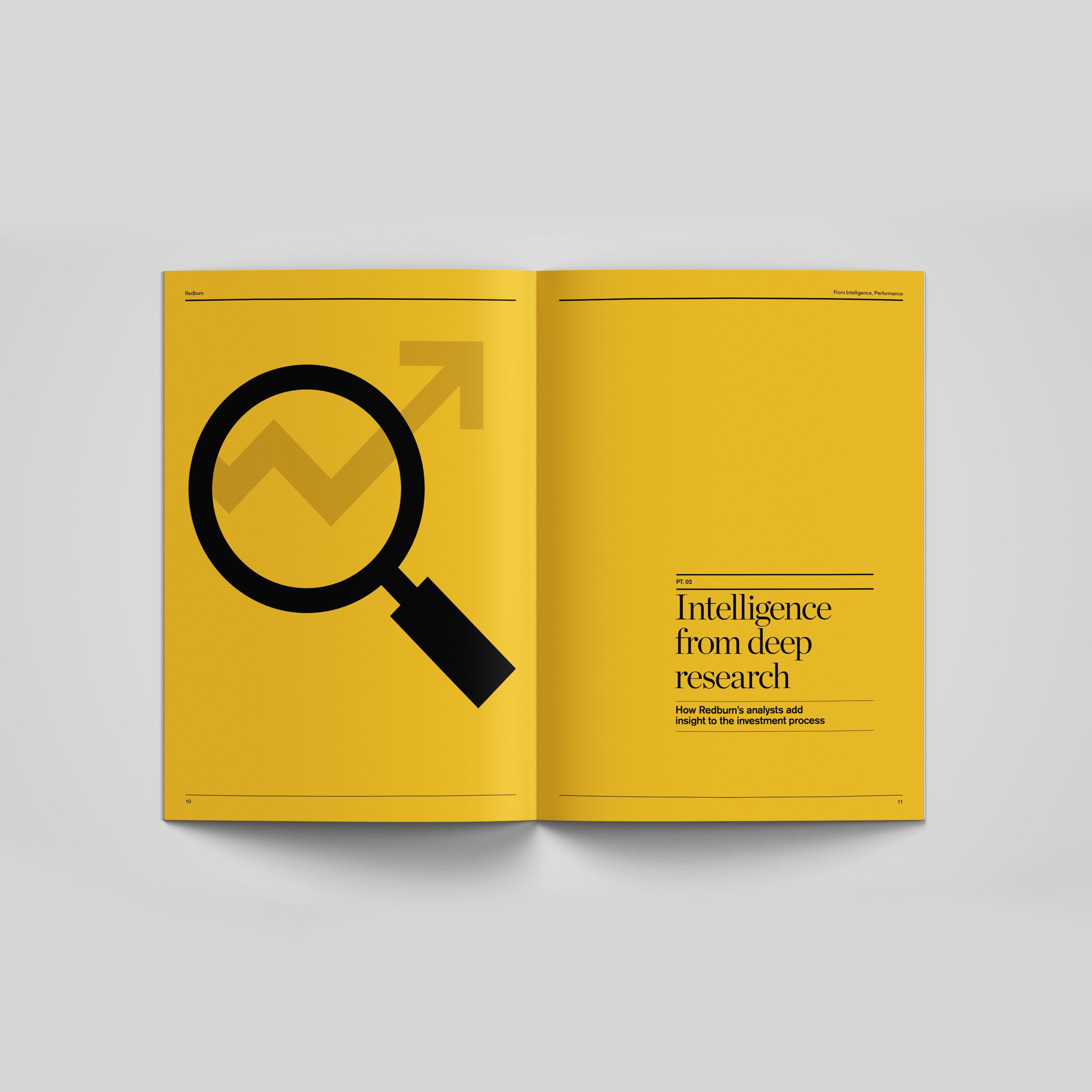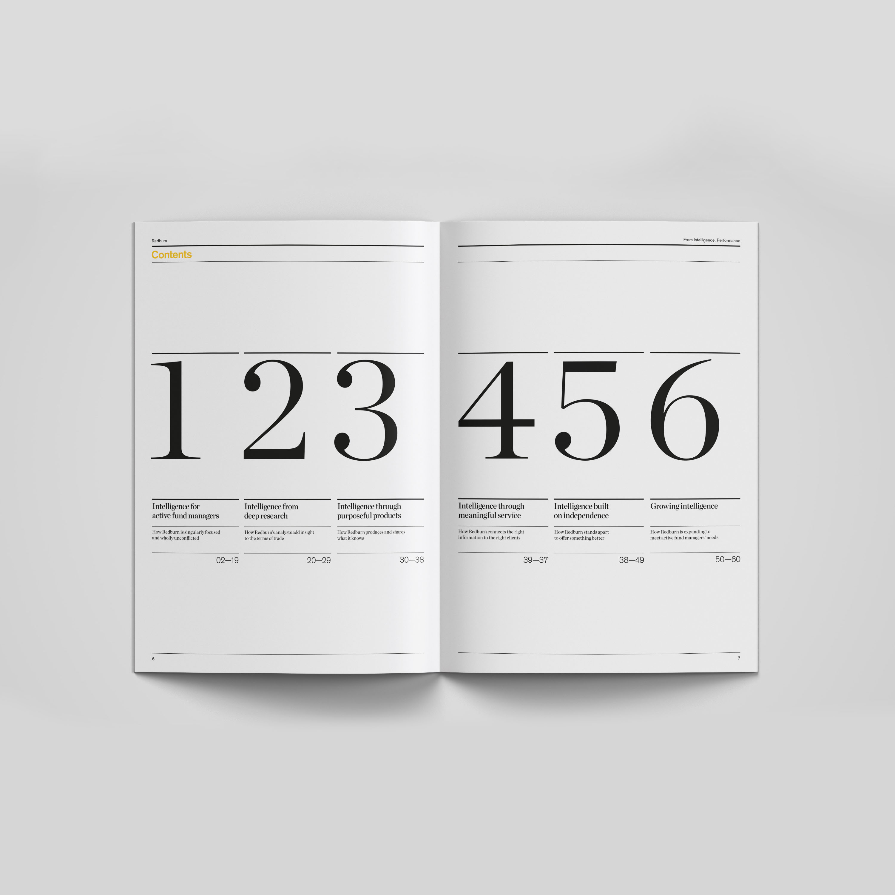 Working with Harry Pearce at Pentagram I designed a book for Redburn. An asset management company that needed a printed publication to show to potential clients. I designed the book that blends photography, quotes, content and biographies in a way that is visually dynamic and uses the typography in a structured but also expressive way while maintaining coherence through a consistent design language rooted in the brand’s identity.