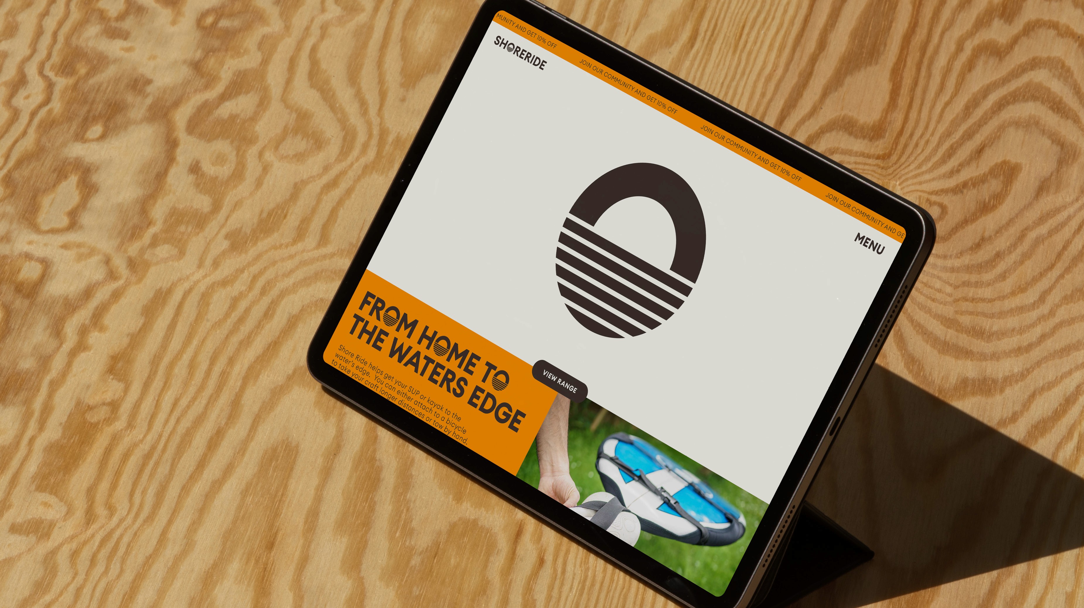 Shoreride is a product that makes it simple for people to get their paddleboard or kayak to the water. For people that live close to the water and want to get there in a hassle-free way, without using their car. The product is a compact, easy to use device, on wheels, that attaches to the back of a bike. The symbol was inspired by the calmness and contentment that comes from spending time in the water. Through early conversations with the founder it was clear that this was more than a paddleboard/kayak product. It was about the spiritual aspect of being more connected to the ocean, rivers or lakes and the mental health benefits of having regular water based activities. It seemed clear from this that the design needed to have a sense of calmness and tranquility to it, hence the sunrise on still water symbol. The colour palette is deliberately vibrant and energetic as this will need to exist in the outdoor and water sports sector alongside paddleboard and kayak brands. The symbol can be used as a standalone device or to replace the ‘O’ within headline statements.